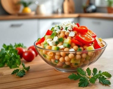 Made with chopped vegetables, olives, cheese, and the simplest light dressing (6P)
